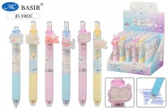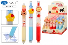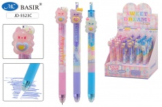 Авторучка со стираемыми чернилами гелевая : "МИШКИ"; цветной с рисунком корпус /ассорти/, клип с насадкой-мишки, резиновый держатель; толщина пишущего наконечника-0,5 mm; цвет чернил-синий.