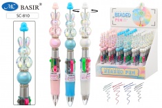 Авторучка - МИНИ: 4-х цветная: детская; "ЗАЙЧИК", мини-корпус, с вращающимся наконечником /ассорти/, резиновый держатель; 0,5 mm.