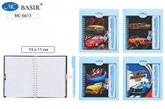 Блокнот детский+замочек+авторучка: "МАШИНЫ"; в подарочной упаковке /19,5*17,5 см/; цветная обложка 7БЦ с рисунком /ассорти/, на евроспирали, блок-клетка 48 л.; 15*11 см.