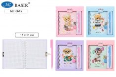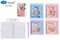 Блокнот детский+замочек+авторучка: "МИШКИ"; в подарочной упаковке /19,5*17,5 см/; цветная обложка 7БЦ /ассорти/, блок-клетка, на гребне, 48 листов; 15*11 см.