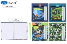 Блокнот детский+замочек+авторучка: "СПОРТ"; в подарочной упаковке /19,5*17,5 см/; яркая, цветная обложка 7БЦ /ассорти/, на евроспирали, блок-клетка 48 л.; 15*11 см.