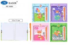 Блокнот детский+замочек+авторучка: "ЛИСА"; в подарочной упаковке /19,5*17,5 см/; яркая, цветная обложка 7БЦ /ассорти/, на евроспирали, блок-клетка 48 л.; 15*11 см.
