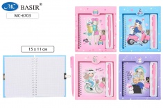 Блокнот детский+замочек+авторучка: "ДЕВОЧКА"; в подарочной упаковке /19,5*17,5 см/; цветная обложка 7БЦ /ассорти/, блок-клетка, на гребне, 48 листов; 15*11 см.
