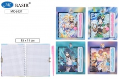 Блокнот детский+замочек+авторучка: "АНИМЕ"; в подарочной упаковке, цветная 7БЦ обложка с рисунком /ассорти/, блок-клетка, на гребне, 48 л.; 15*11 см.