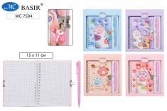 Блокнот детский+замочек+авторучка: "КОТИКИ"; в подарочной упаковке /19,5*17,5 см/; цветная обложка 7БЦ /ассорти/, блок-клетка, на гребне, 48 листов; 15*11 см.