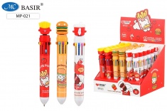Авторучка 10-и цветная: детская; "Фаст-Фуд"; цветной корпус с рисунком /ассорти/, прорезиненный наконечник; 0,5 mm.