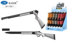 Ручка шариковая; "РУЖЬЁ"; цветной корпус, выполнен в форме ружья /ассорти/, цвет чернил-синий, длина ручки -19,5 см.