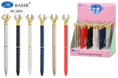 Шариковая ручка с поворотным механизмом: цветной-металлик корпус /ассорти/, наконечник-крупный кристалл; цвет чернил синий.