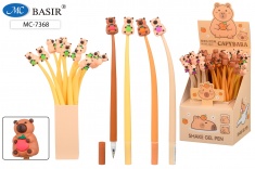 Ручка шариковая детская:"КАПИБАРА", гибкий прорезиненный цветной корпус /ассорти/, накончник-КАПИБАРА, 0,5 mm, цвет чернил-синий.