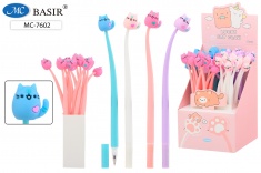 Ручка шариковая детская "КОШКИ", гибкий прорезиненный цветной корпус /ассорти/, наконечник-Кошка, 0,5 mm, цвет чернил-синий.