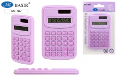 Калькулятор - мини; 8 разрядный, двойное питание, размер калькулятора 97*60*8 mm, цвет корпуса - розовый, в полиэтиленовой упаковке на картонной подложке