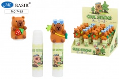 Клей-карандаш: детский "ЖИВОТНЫЕ"; цветной с рисунком пластиковый корпус с выдвигающимся стержнем, прорезиненный колпачок в виде зайчика, мишки, собачки, 9 гр.