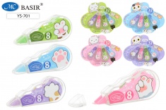 Корректирующая лента /набор 4 штуки по 8 м. /:"МИШКИ"; в индивидуальной веерообразной упаковке с европодвесом, для корректировки текста на любом типе бумаги