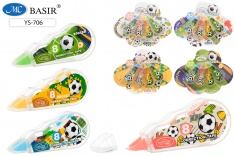 Корректирующая лента /набор 4 штуки по 2,5 м. /:"ФУТБОЛ"; в индивидуальной веерообразной упаковке с европодвесом, для корректировки текста на любом типе бумаги.