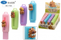 Ластик: "КАПИБАРА"; выдвижной; мягкий, цветной в пластмассовом футляре /ассорти/, клип-капибара, размер 8 см.