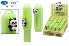 Ластик: "ПАНДА"; выдвижной; мягкий, цветной в пластмассовом футляре /ассорти/, клип-панда, размер 8 см.