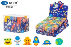 Ластик: "КОСМОС"; мягкий, цветной фигурный-цилиндрической формы /ассорти/, в пластиковой упаковке по 6 штук, размер 5,0*2,0/3,0/ см.