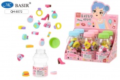 Ластик: "ДАМСКИЕ ШТУЧКИ"; выполнен в форме сумочки, колечка, шляпки и т.д. /ассорти/, в пластиковой баночке /9*5 см/ по 18 шт /2,5*2 см/.