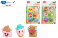Ластик-насадка: "ВЕСЁЛЫЕ ФРУКТЫ, FOOD"; выполнен в форме фруктов и ягод /ассорти/, в блистере на картонной подложке /17*10,5 см/ по 6 шт.