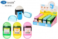 Точилка+ластик: цветной корпус /ассорти/ с контейнером и крышечкой для ластика, размер 6,5 см.
