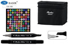 Набор скетчмаркеров: двусторонние, 1,0-7,0 mm; чёрный квадратной формы корпус; на спиртовой основе; тканевая чёрная сумка на молнии, 100 цветов.