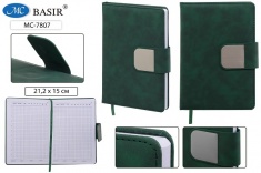 Ежедневник: материал-кожезаменитель, цвет зелёный, под нубук, металлическая застёжка на магните, справочная информация; блок-1 офсет, клетка; 116 листов, 14,5*21 см.