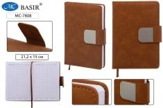 Ежедневник: материал-кожезаменитель, цвет коричневый, под нубук, металлическая застёжка на магните, справочная информация; блок-1 офсет, клетка; 116 листов, 14,5*21 см.