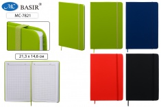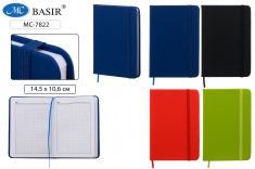 Ежедневник: на резинке, материал-кожезаменитель, цветной /4 цвета/, клетка; 80 листов, А5 21*14,5 см.
